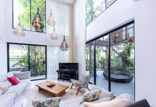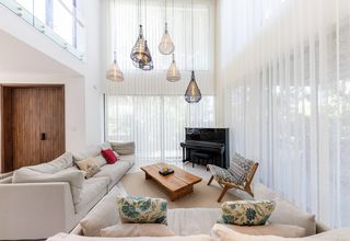 In this stunning villa, the 6.4-metre-high windows make a bold architectural statement and present a technical challenge. The solution? Silent Gliss cord operated curtain tracks.