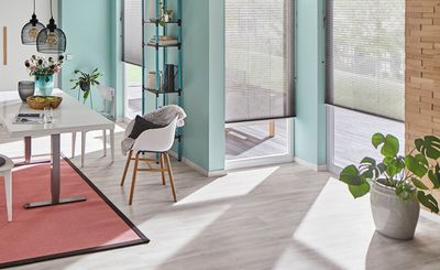 Pleated blinds are one of the most versatile blind systems available since they come in a wide range of shapes and operating methods. They are lightweight, easy to operate and are fitted close to the window for maximum heat control. When the blinds are open, the minimum stacking area allows for maximum visibility. We offer a wide range of plain, patterned and energy-efficient fabrics to complement your windows.