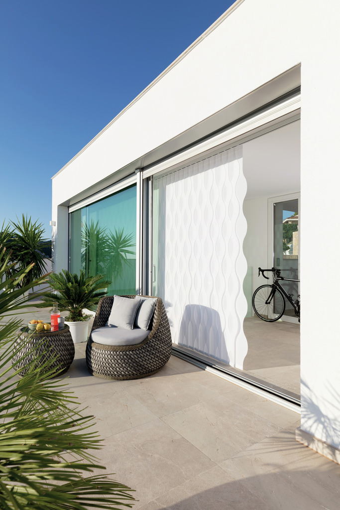 Monobetjening for enkel betjening - lamellene skråstilles og trekkes frem/tilbake med samme kjedebetjening.